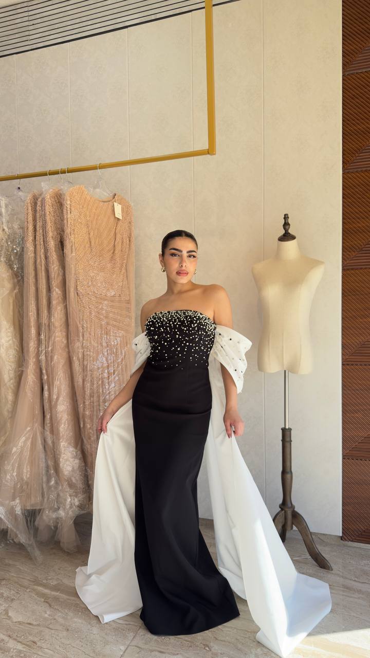 Elevate your evening style with this sleek and modern black gown, designed for effortless sophistication. Featuring a strapless neckline, this piece highlights the shoulders and collarbone for a refined, elegant look.