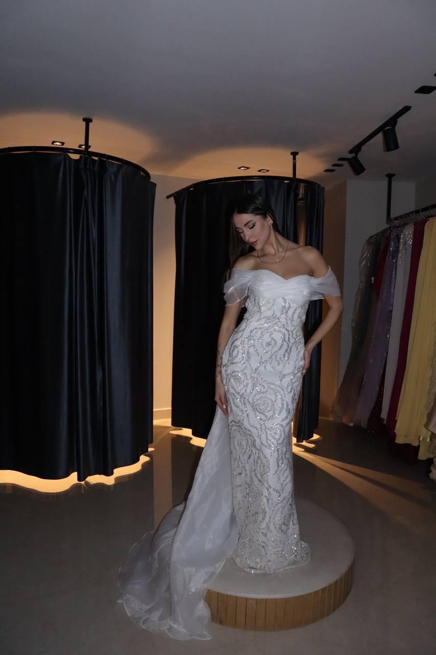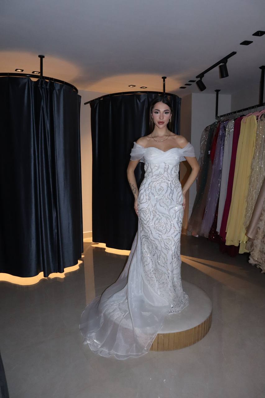 | Description | Dazzle in This White Beaded Evening Gown Featuring a Belted Waist and Cape Sleeves, Perfect for Weddings, Engagementsand Sophisticated Gala Events. | Turn Heads in This Gold Glitter Off-Shoulder Ball Gown with Sweetheart Neckline and Layered Tulle Skirt-ideal for Weddings, Receptionsand Glamorous Galas. | Dazzle in This Champagne Embellished Evening Gown with Sheer Cape Sleeves, Criss-Cross Necklineand Intricate Sequin Beadwork-perfect for Galas & Weddings. | Make a Statement in This White Evening Gown Featuring Beaded Cape Sleeves, Jeweled Waist and a Voluminous Ruffled Hem-Ideal for Weddings and Gala Events. | Champagne Beaded Evening Gown with Off-Shoulder Sleeves, Slim-Fit Bodiceand Floor-Length Train. Perfect for Weddings, Receptionsand Gala Events. | |||||||||||||